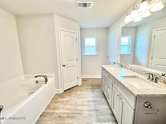 ***THIS HOME COMES WITH WINDOW BLINDS AND WASHER/DRYER*** Enjoy lake life in this beautiful 4-side brick home located in the highly desirable lake community of Emerald Lake Estates. This home features an open floor plan with a spacious kitchen that has gray cabinets, a center island, breakfast bar, a large pantry and stone countertops. Stone countertops are also included in both the primary and guest bathrooms. Luxury vinyl plank flooring is found throughout the home except for the bedrooms. The primary bedroom features a tray ceiling with ceiling fan. The attached primary bathroom features a vanity with double sinks, separate walk-in closets and a separate garden tub and shower. Relax on your covered front porch after a day of swimming, fishing, paddleboarding, kayaking or pedal boating. Amenities include a community pool, lake, fishing dock and amenity center. Some of the photos are from a previously constructed home with the same or similar floor plan. Colors and options may differ.