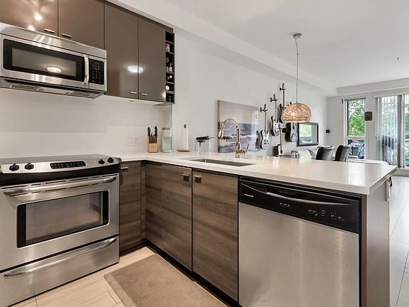 Available from June 1, 2025. Welcome to Verve, the sought-after complex nestled in Surrey's vibrant heart. Just minutes away from King George Skytrain, Surrey SFU, Surrey Memorial Hospital, and a plethora of shops and recreational facilities! This unit boasts a fantastic layout comprising 1 bedroom plus an oversized den. Enjoy the airy open-concept floor plan with 9-foot ceilings, complemented by a generously sized patio perfect for barbecues. The kitchen is adorned with quartz countertops, stainless steel Frigidaire appliances, and soft-close cabinetry. Additional perks include in-suite laundry, 1 parking stall and 1 storage locker. Residents also have access to bonus amenities such as a socializing room, a fully equipped gym, and a guest suite for visitors. To arrange a showing please provide us with the following information for each of the occupants: 1) Full names. 2) Phone number and email address. 3) Desired move in date. 4) What is the number of occupants. 5) What is your current employment status, occupation, and household annual income. 6) What is your availability and preferred day/time for showings. Please note: * Minimum one year lease. * Unit is unfurnished. * Security deposit required. * No smoking (includes e-cigarettes, marijuana etc). * References and credit check required. * Tenant Insurance is required. * One parking space is included. * One storage locker is included. The property address is - 13925 FRASER HWY, SURREY BC V3T 4E6 Listed by - My Dream Realty