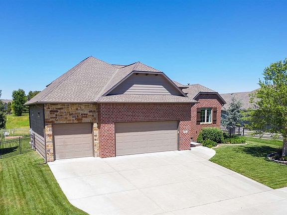 Absolutely gorgeous home with open floor plan concept features views of the golf course, 4th car garage and NO Special Taxes! This home was custom built by the builder as his personal home and has been extremely well designed with beautiful hickory hardwood floors carried throughout the main floor, grand foyer, custom kitchen cabinetry with large walk in pantry and soft close drawers, two stone gas fireplaces, u-shaped staircase with wrought iron spindles, granite countertops, main floor laundry with drop zone, tall 10 foot ceilings, walk out basement with 9 foot ceilings, covered deck, surround sound speakers throughout the interior as well as exterior and white trim carried throughout! Enjoy morning coffee views of the Auburn Hills Golf Course or host lovely evening dinners on the recently stained covered deck with additional pull-down shades accompanied by music from your exterior speakers. Main floor master bedroom also has amazing views of the greens and has a gorgeous custom walk in tile shower with river rock shower base, large walk in closet, double sinks and spa-like tub. Split floor plan layout includes three bedrooms upstairs and two additional bedrooms downstairs. Entire interior of home has been recently painted and the wet bar downstairs is almost a second kitchen with room for a full-size refrigerator, dishwasher, stained concrete flooring, and tons of great additional cabinet storage! Walk out basement leads you to your beautiful backyard set up with patio, irrigation well, sprinkler system and wrought iron fence! This home has been extremely well maintained and truly feels like new construction, already has the radon system installed for you, brand new roof and gutters installed July 2019 with transferrable warranty, landscaping already perfectly placed and has the 4th car garage that will fit a 4 door pick up!! Established in Auburn Hills; community amenities include golf course, lake/pond, four playgrounds, club house, and four community pools to choose from! Home is located within the Goddard School District and near St Elizabeth Ann Seton Catholic School as well as Holy Spirit Catholic School!