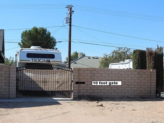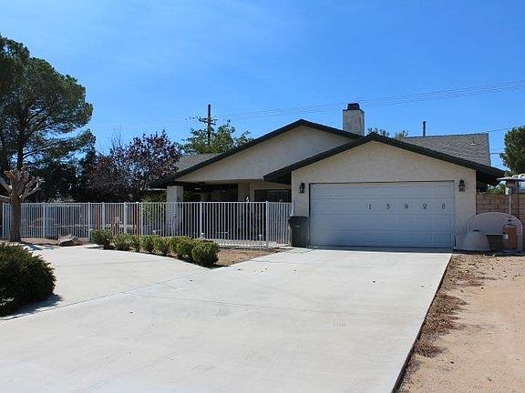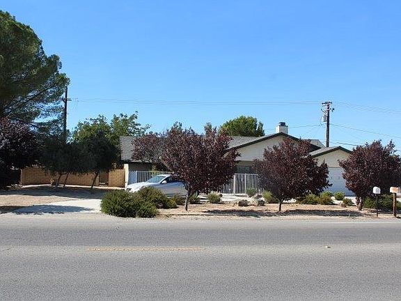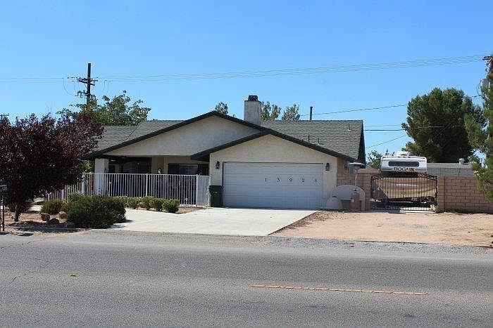 Apple Valley - Convenient Desert Knolls location. Equal distance to shopping at Jess Ranch or Apple Valley North. Spacious 3 bedrooms, 2 full baths, split floor plan. Great room with high vaulted ceiling and massive corner fireplace with mantle and hearth, kitchen with stainless steel appliances and granite counters/backsplash and breakfast bar. Wood look tile in kitchen, laminate flooring in dining room, great room and hallways, carpet in all bedrooms. Large master bedroom with walk-in closet. Secondary bedrooms have walk-in closets. Covered front porch can easily accommodate large table, chairs and lounge, 32 feet of covered back patio with natural gas outlet for BBQ. 10 x 20 wood shed, 15 x 60 concrete RV parking with 50 amp electric and water hookups. Large backyard with privacy chainlink fencing awaits your landscaping ideas with sprinkler connections available. Newer roof and HVAC system. Buyer to verify all measurements.