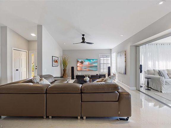 An elegantly appointed carriage home showcasing the Winchester model. Every detail has been thoughtfully elevated through recent upgrades. The interior is graced with porcelain tile flooring throughout, seamlessly connecting each space. The kitchen highlights updated cabinetry, granite countertops, and tile backsplash, and newer kitchen appliances. Both baths have been remodeled with contemporary finishes and fixtures. Additional features included newer HVAC (2021) and water heater (2024). An enclosed lanai with acrylic shutters extends the main living area, enhancing the sense of openness and flow, while offering lake views framed by northern exposure. This added square footage supports a flexible indoor-outdoor lifestyle, unique to this residence. Worthington Country Club offers an active lifestyle with access to an 18-hole championship golf course, five Har-Tru tennis courts, a clubhouse offering elegant dining, a state-of-the-art fitness center, a resort-style pool and a poolside cabana. All conveniently near Bonita Beach, Southwest Florida International Airport and premier shopping and dining venues. Next door, an exciting new development, Bonita Midtown is set to open in 2026 with new dining and retail. Club enhancements are in progress, including five new tennis courts, four pickleball courts and a new indoor-outdoor cabana featuring an electric pergola, with no special assessment to property owners.