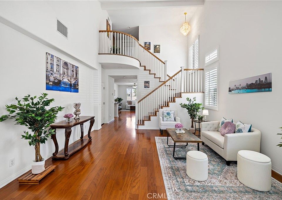 PRICE REDUCTION $50,000 - Welcome to this highly desirable floorplan in the guard gated community of Hawks Pointe! This stunning 4 bedroom, 3 bathroom residence sits on one of the largest and most private lots in the neighborhood - a premium elevated corner lot with only one side neighbor and open views on three sides. Step into the grand entryway with soaring vaulted ceilings that create a bright and airy first impression. The popular open-concept layout features a kitchen that flows seamlessly into the family and dining areas, ideal for everyday living and entertaining. A downstairs bedroom and full bathroom provide an ideal space for guests or multigenerational living. Upstairs, the spacious primary suite boasts walk-in closets and a private balcony with neighborhood views, a luxurious ensuite bath with dual sinks, a soaking tub and separate shower. Enjoy outdoor living with an extra-wide side yard providing plenty of room for play, lounging, and gardening. The elevated lot offers a unique sense of openness and privacy rarely found in the community. Located in the hills above La Mirada, Hawks Pointe offers a tranquil setting with trails, parks and lush greenery, all while being conveniently close to shopping, dining, markets, and multiple golf courses. Don't miss this opportunity to own a home in one of the area's most sought-after neighborhoods!