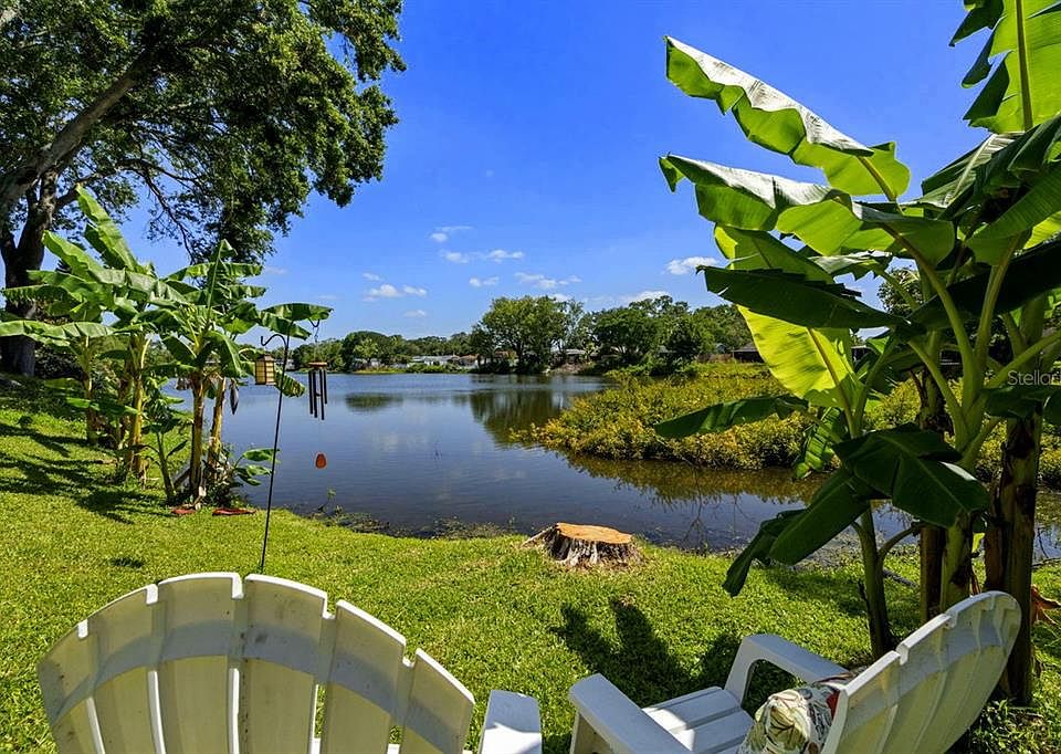 Looking for an updated Dunedin home with tranquil water views? Look no more! This 3/2/2 block home has an attractive curb appeal and sits in a sought-after neighborhood on a street with sparse traffic. It is located in a NON-flood zone and experienced NO water intrusion during Helene & Milton. It offers a spacious, open, split bedroom plan with vaulted ceilings and tropical water views of Scots Lake. Watch turtles, rabbits, ducks, egrets, herons, and owls frolic from your rear porch. The floor plan includes the following: welcoming front porch, foyer with coat closet, large living room with double sliders to porch, casual dining area, updated open kitchen, master suite with updated private bath & walk-in closet, guest or 2nd bedroom with walk-in closet, office - den or 3rd bedroom, updated hall bath, 2-car garage with washer/dryer & utility sink, PLUS a relaxing screened porch overlooking the lake, PERFECT for your morning coffee & evening glass of wine. The abundant indoor & outdoor living spaces make this home great for entertaining. The home also features several updates, KITCHEN: shaker cabinets with hardware, Corian counters with 4" backsplash, stainless double sink, faucet, and stainless steel appliances: MASTER BATH: vanity, vessel sink, faucet, mirror, light fixture, toilet, wainscoting, tile floor, showerhead, and custom tiled walk-in shower with glass enclosure, HALL BATH: vanity, faucet, mirror, light fixture, toilet, wainscoting, tile floor, showerhead, and custom tiled tub, INTERIOR: Brazilian hardwood floors, ceiling fans, light fixtures, 6-panel doors with hardware, chair rail molding, impact windows, window shades, front door with tempered glass, A/C system (2020), kitchen impact sliders (2020), whole house re-pipe (2022), water heater (2022), and fresh paint, EXTERIOR: south wood fence, back yard drainage system, PLUS a NEW shingle roof (2025). Home is ideally located a short drive from supermarkets, banks, major shopping hubs, Westfield Mall, the Dunedin Causeway, Honeymoon Island, and Historic Downtown Dunedin, with its unique shops, top rated restaurants and endless activities. Also enjoy countless amenities the area offers: beaches, parks, casual & fine dining, roof top bars, micro-breweries, cafes, bike riding, boating, fishing, downtown festivals, concerts, art shows, spring training baseball, championship golf, sunsets, and events at the Community & Fine Art Centers. This is a Must See for buyers seeking a move-in ready Dunedin home with an active & vibrant lifestyle... Great Home in a Great Location!