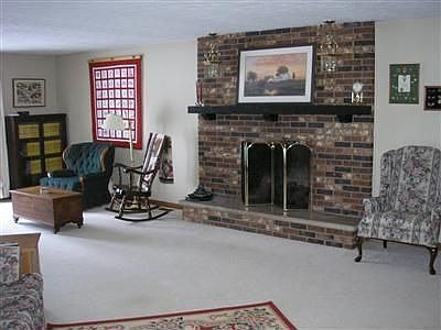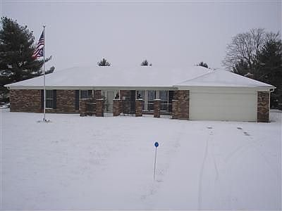 This elegant brick ranch offers over 2,500 sq ft of living area including 3 spacious bedrms and 2 full baths - 2.5 acres with mature trees - quiet country setting but just minutes from 35 bypass - 13 x 12 din rm w/2 large picture windows - 28 x 16 fam rm w/ brick propane gas fireplace, wet bar - 13 x 12 kitchen w/white wood cabinets, built-in range, dishwasher, refrigerator stays, built-in china cabinets, tray ceiling, lg pantry for storage - 9 x 8 breakfast area - 12 x 7 utility room w/commode - water softener, Aqua Systems water purifier - 17 x 13 sunken living rm w/large picture window - 19 x 6 entry w/ceramic brick flooring, chandelier - 16 x 13 master bd w/master bath, double closets - 14 x 14 bdrm w/walk-in closets - 14 x 12 bdrm w/double closets - 2 concrete patios, blacktop driveway - gated courtyard at front entrance - 16 x 10 outbuilding - vinyl replacement windows, Carrier High efficiency furnace - 24 x 21 two car attached garage w/overhead storage, workbench, shelving.