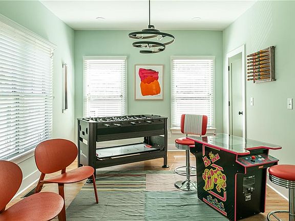 PROMOTION: The listed rate is for a 12-month lease where the tenant pays additional utilities of $500 utilities and this includes high-speed internet! While we are flexible on shorter-term stays and are happy to accommodate, the rates & utility charges WILL differ. If you are displaced due to a hurricane or local event, please flag this. We are here to help. Minty Living is Atlanta's preferred housing provider for many insurance companies. Please inquire if you need more than a month. FULLY FURNISHED There's room for everyone to have a good time at Chill Ville, East Atlanta's coolest new home! Just steps from East Atlanta Village (EAV), this property's location cannot be beat. Off the welcoming entry is the game room, where Ms. Pac-Man and a foosball table hold court. There are two guest bedrooms across the hall, one with a workspace, as well as two full baths. The dining room with bar and wine fridge is the perfect place to gather together. Next up is the spacious chef's kitchen and family room with sectional sofa, TV, fireplace, and large island. The main level is rounded out by the largest of the four bedrooms and bathrooms, featuring a king bed, walk-in shower, double vanities, and separate water closet.