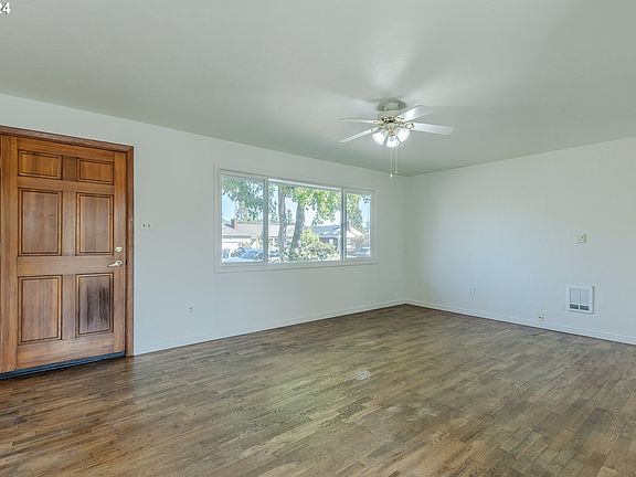 This cozy 2-bedroom, 1-bathroom home features beautiful hardwood floors in both the bedrooms and living room, adding warmth and character throughout. Fresh interior paint brings a bright and inviting feel to the entire space. The kitchen has a new dishwasher and lots of cabinets, it looks out to the large fully fenced backyard. The laundry/mud room offer convenience, to access the backyard with a deck great for relaxing or entertaining. This home is close to McKenzie Willamette Hospital, shopping, schools, parks & the bus line.