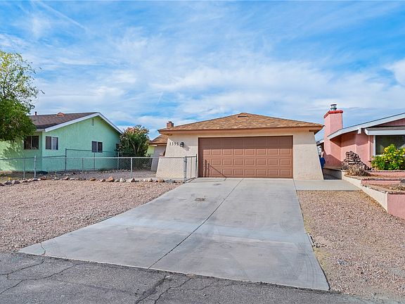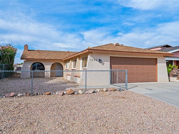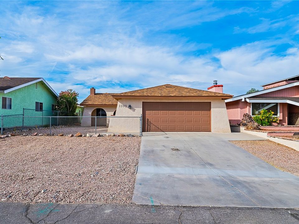 Charming single-story home near the Colorado River! Offers a perfect retreat for both part-time residents or full-time residents seeking comfort, convenience and outdoor entertainment. Move in ready, fully fenced front and back yard, gravel parking for your toys and only a short walk to river access. The living room, featuring a cozy gas fireplace for those cool winter nights, is designed for both relaxation and entertainment, with doors leading to a covered patio with a gas hookup for your BBQ. The kitchen provides a beautiful space for culinary exploration with shaker cabinets, stone countertops, and a stylish backsplash, offering both functionality and aesthetic appeal for the home chef. Spacious primary bedroom features a large bathroom with a double vanity and walk-in shower. Other features include newer A/C, heat, kitchen appliances, plus closet storage space galore and an indoor laundry room. Centrally located near community river launch ramps, shopping, restaurants, and just minutes from the Laughlin casinos and Lake Mohave.