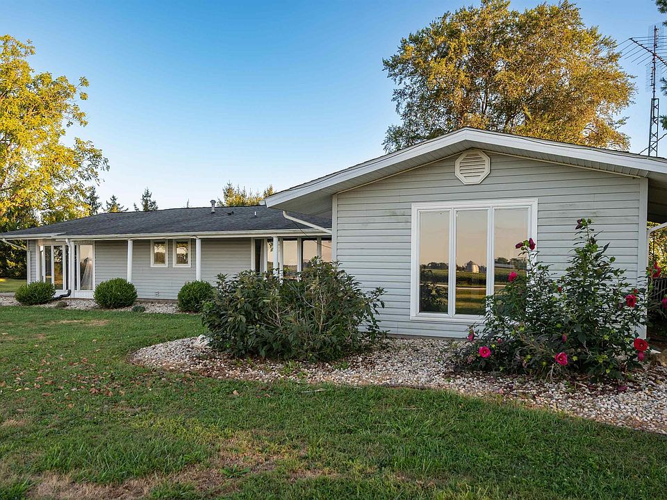 Wide open 1.64 acre stretch in Madison Grant school system to create your homestead. 2320 sq.ft. one story home with 3 bedrooms 3 baths. Living/dining room combo with cathedral ceiling. Spacious family room with vaulted ceiling, vent-less gas fireplace, and built in bookshelves. Jetted bathtub, Primary bedroom with en-suite and 2 walk-in closets. Freshly painted, new HVAC, new well pump, new gutters, new front landscaping, newer appliances, baths recently remodeled, mostly replacement windows, some newer light fixtures. Enjoy the 13x20 enclosed 3 season room and private open brick patio in back. Oversized 30x30 garage. 40x60 barn with electricity. Mature trees, raspberry and strawberry bushes.