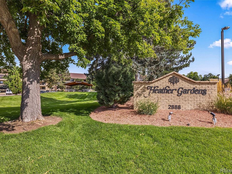 Heather Gardens is a desirable 55+ condominium community in Aurora, located just east of Cherry Creek State Park and set along the Heather Gardens Golf Course. The community offers a vibrant lifestyle that blends comfort with social engagement. This recently updated 1-bedroom, 1-bath unit with a large walk-in closet overlooks one of the lush green fairways and features an enclosed lanai/sunroom, an updated kitchen, a convenient storage unit just steps away, and an in-unit laundry closet. The building provides a secure entrance, is serviced by two elevators, and includes one reserved underground heated garage space. Residents enjoy resort-style amenities, including indoor and outdoor swimming pools, a clubhouse, fitness center, billiards, craft room, and wood shop. Combining the tranquility of a suburban setting with nearby urban conveniences, Heather Gardens is an ideal choice for those seeking both relaxation and activity in their retirement years. INVESTOR OPPORTUNITY! Only 15% of 20% rental cap used—eligible to rent immediately!