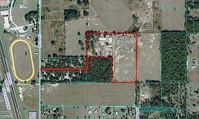31+/- acre farm needs a LOT of work, super location near Garlits Museum and proposed Publix shopping center etc. Adjoining land use favorable for developing. 5/8 Mile track, 3 barns - 12 wood stalls, 8 wood stalls, 6 block stalls. 2 RV hookups, 2 wells.