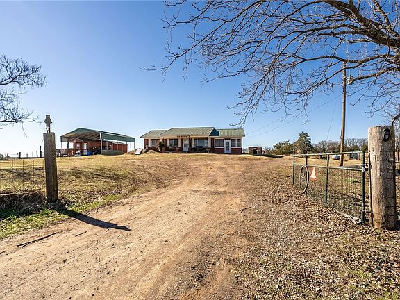 Updated 3 bedroom, 1 bath brick home, carport converted to living area,(extra 280 ft.), metal roof, S/S appliances, new paint, carport, tile & laminate floors, updated electric. Window air (6), & gas heaters. 500 gallon Propane tank conveys, Gryner built storm shelter, 16x40 building with window air & gas heat. 28x32 steel awing for parking, 2 ponds, newer fence & cross fences, tractor shed, small loaf shed, old barn. 3 wells on property, rural water to home, fiber optic WAVE internet, 2 horse stalls, & small Corral. List agent is related to seller.