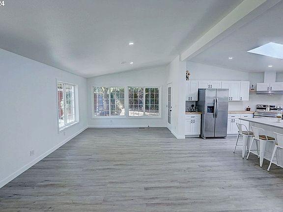 NEW PRICE! Gorgeous turnkey small acreage property in Mulino. Tastefully updated home sits on 3.22 acres with Milk Creek frontage. Light and bright open floorplan with fresh paint, updated lighting fixtures and ceiling fans, new interior doors and new LVP flooring throughout. The kitchen is a dream with brand new soft close cabinets, butcherblock countertops, sink, garbage disposal, granite topped island and range hood vent. Newer SS kitchen appliances and a large pantry complete the space. Just off the kitchen is the dining/family room with new French doors leading to a covered patio. As you enter the spacious living room, you’ll be captivated by the picturesque view of the back half of the property. The primary suite includes a nicely sized walk-in closet and a large bathroom with brand new vanity, sinks, mirrors, lighting fixtures, free standing soaking tub and step in shower. Two additional bedrooms share a second full bathroom. Laundry room has added storage with washer and dryer included. Exterior of the home has a new roof and gutters (with a 10-year warranty) and new siding for buyer peace of mind. Outside, you’ll appreciate a large front yard and a paved circular driveway with plenty of space for RV parking. There’s a barn/shop with 220 and a lean-to for your parking and storage needs. Mature landscaping, champagne grape vines and various fruit trees adorn the property making for a serene retreat from the hustle and bustle of busy everyday life. Wander down towards the back of the property to enjoy all that Milk Creek has to offer. This house is move-in ready and truly one you must visit in person to fully appreciate.