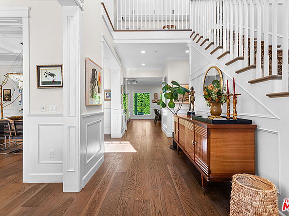 Nestled within the highly sought-after Fashion Square neighborhood of Sherman Oaks, this fabulously chic 2015 East Coast Traditional perfectly blends timeless elegance with contemporary comfort. The home is introduced by inviting curb appeal and thoughtfully designed landscaping that set a warm, welcoming tone. A grand entry with soaring ceilings and abundant natural light opens to an airy layout designed for modern living. The formal living room flows effortlessly into a spacious dining room, ideal for entertaining. The well-appointed chef's kitchen features beautifully crafted cabinetry, a large center island, and a full Thermador stainless-steel appliance package. The adjoining family room, complete with 3D projector and 135-inch screen with blackout shades, offers a cinematic experience. Accordion glass doors open to a private backyard oasis featuring a sparkling pool, large patio with fireplace, and lush greenery creating a seamless indoor-outdoor living experience. Offering four bedrooms and four baths, including one conveniently located on the main level, the home combines functionality with elevated style. The primary suite is a true retreat, showcasing vaulted ceilings, a dual-sided fireplace connecting to a spa-like bath, an oversized walk-in closet, and French doors leading to a spacious private balcony. Additional highlights include extensive custom built-ins and cabinetry, a wine closet, large pantry, upstairs landing with "Genius Bar" style workstations, surround sound throughout, custom linen window coverings, designer lighting by Schoolhouse Electric, RH, Nickey Kehoe, Circa Lighting, and exterior fixtures by Amber Interiors. Other notable features include an EV charger, exterior security cameras, and Ring doorbell. This home radiates effortless sophistication and warmth - a perfect expression of modern California living infused with East Coast charm in one of Sherman Oaks' most coveted enclaves. NO PUBLIC OPEN HOUSES. Shown by appointment only, easy to show.