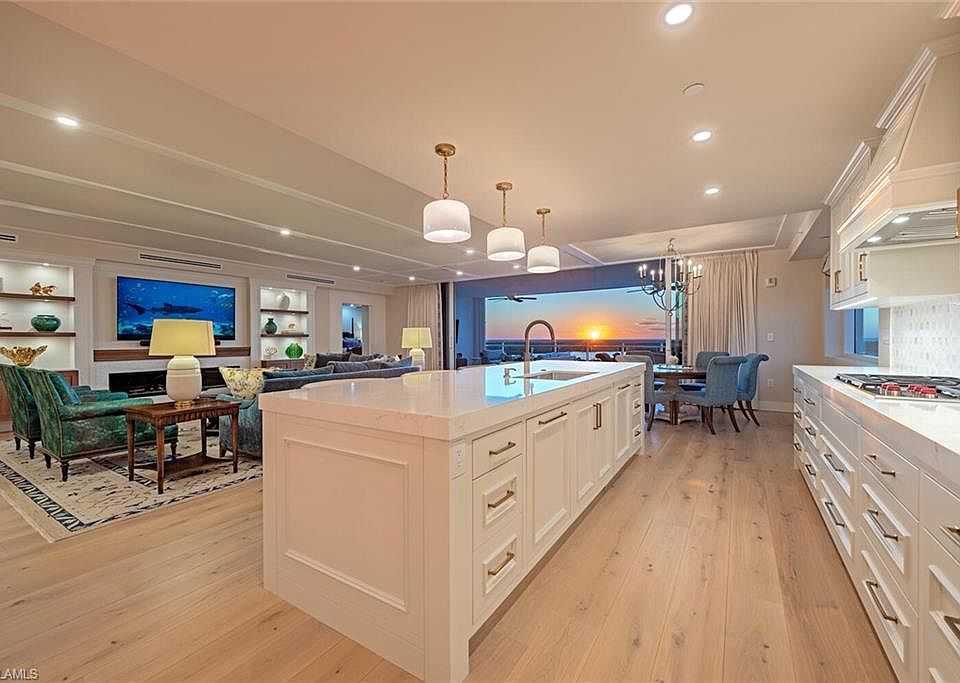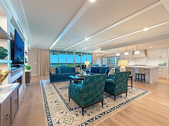 Elegant finishes and sophisticated design define this 6th-floor corner residence in Tower 300 at Kalea Bay. This turnkey home showcases professional interior design with luxurious furnishings, custom built-ins, exquisite millwork, designer wall coverings and lighting throughout. A wall of sliding glass doors opens to a spacious lanai, offering breathtaking Gulf sunsets. The residence lives like a single-family home, spanning 3,223 square feet with three bedrooms, a den with private balcony, and three-and-a-half baths, including a spectacular primary suite featuring a 9’x18.5’ custom closet. Highlights include Legno Bastone wide-plank oak floors, custom cabinetry, motorized shades, crown molding, a Kinetico water softener with carbon filter and RO drinking system and upgraded air purification. The open gourmet kitchen boasts Wolf gas appliances, Sub-Zero refrigeration, a full-height wine cooler, and a butler’s pantry with ample storage. Enjoy direct elevator access to the building’s exceptional rooftop amenities, featuring a pool, open-air fitness center, BBQ grills, and lounge areas—all with sweeping Gulf views and unforgettable Naples sunsets. --- This Kalea Bay residence provides all the conveniences of living in a luxury condominium and membership to a private club with 5-star amenities, a combination that has made Kalea Bay one of the most successful and desirable communities in Naples. Built in 2022, Tower 300 is located directly across from the Club at Kalea Bay and provides easy access to 80,000 square feet of exceptional modern amenities, including a wellness center with a state-of-the art gym, spin room, Pilates, spa services plus 3 resort style pools, 2 open-air poolside bars, fine and casual dining options, outdoor fire pits, a kids’ game room, 8 pickleball and 4 tennis courts, guest cottages and more. Kalea Bay Residents also have the option to join the annual Beach Card Program, based on availability, which grants access to the private Beach Club at Moraya Bay at Vanderbilt Beach for dining both indoor and outdoor as well as beach service including food, beverages, chairs and umbrellas.