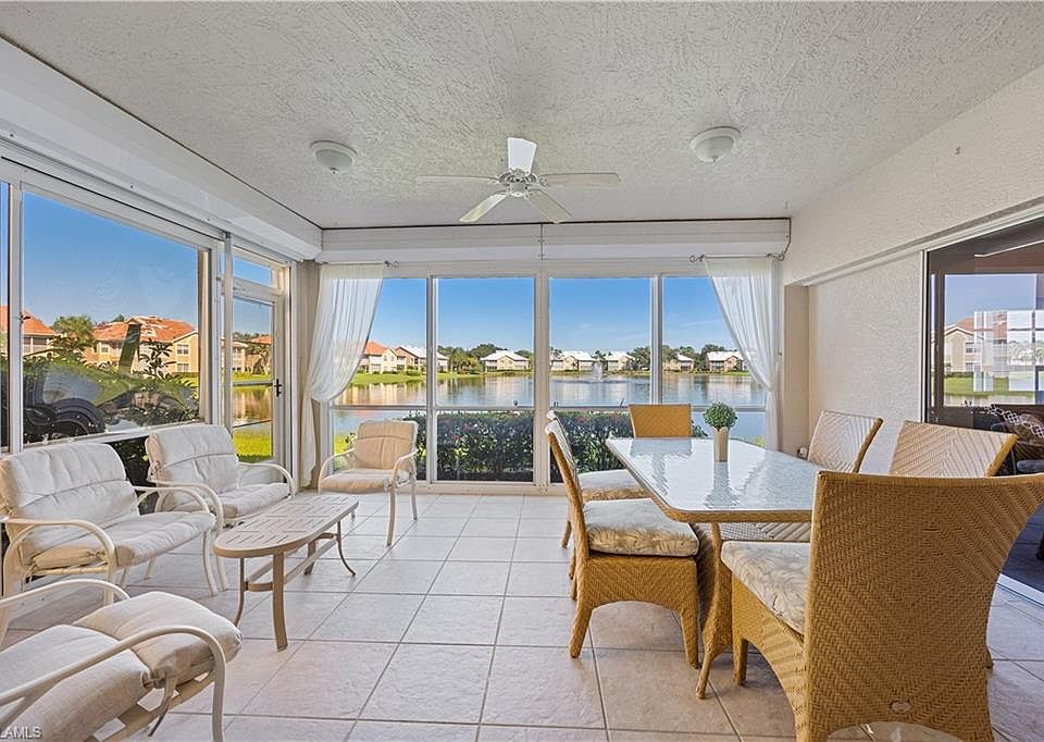 Turnkey 1st-Floor Carriage Home! This beautifully maintained home features an enclosed lanai, adding approximately 200 square feet of additional living space overlooking a serene pond and fountain. Just three buildings away from the neighborhood pool and pickleball courts, the location is unbeatable!The open floor plan is perfect for entertaining, with updated bathrooms, electric hurricane shutters, and thoughtful touches throughout. Enjoy immediate access to the championship golf course, where members may use their own golf carts. The community also offers an active tennis group, bocce, fitness center, resort-style pool, games, dances, and endless activities for every lifestyle. Exciting enhancements are on the horizon—including a brand-new cabana with expanded outdoor dining and bar, along with resurfaced tennis and pickleball courts—all with no assessment or added debt to homeowners. Conveniently located near gulf beaches, shopping, dining, and the airport, this home is the perfect place to enjoy the Florida sunshine year-round. New roofs for the Wedgewood Fountain neighborhood! Rented January 6 to April 6, 2026