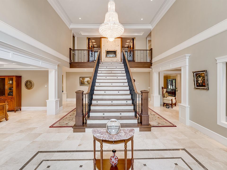 Experience timeless elegance in this 1-ACRE LOT stunning European-inspired gated estate, nestled in the prestigious Elgin Chantrell neighbourhood. Designed for luxurious living and entertaining, this grand limestone residence offers expansive living spaces and impeccable craftsmanship throughout. A dramatic foyer with soaring ceilings and marble flooring sets the tone for sophistication. The main level includes formal living and dining rooms, a private office, and a beautifully appointed kitchen with French doors opening to an expansive wraparound deck. Upstairs, you'll find a charming library and 4 spacious bedrooms, including a luxurious principal suite. The walkout lower level is a true entertainer’s dream, featuring a sprawling recreation room, media room, gym, and more.