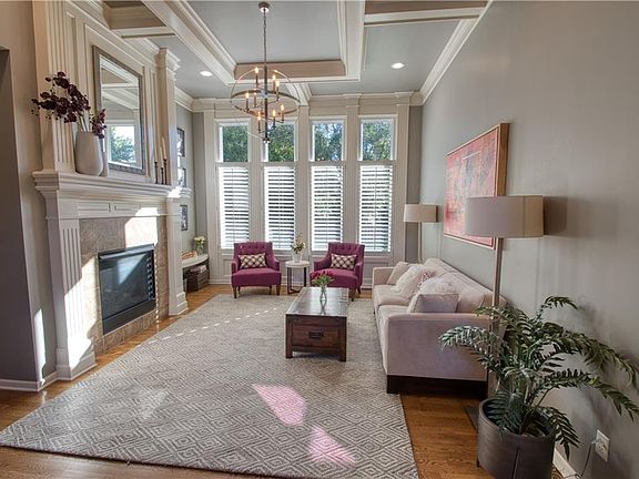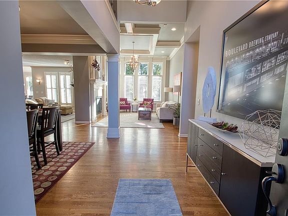Stunning 1½-story home in the award-winning Blue Valley School District! The main-level primary suite offers a luxurious retreat with electric blinds, a spa-inspired bath and expansive walk-in closet. The soaring ceilings in the great room create a bright, open feel that flows seamlessly into the gourmet kitchen. The Kitchen features: granite countertops, beautiful cabinetry, large walk-in pantry perfect for cooking and entertaining. The finished basement adds incredible living space with a private office, workout room, bar area, and all-new LVP flooring throughout. Upstairs you have a gorgeous loft area and three bedrooms, all with adjoining bathrooms. Step outside to a spacious concrete stamped patio and custom fire pit ideal for outdoor gatherings and relaxing evenings. Other features include: New HVAC, Plantation shutters, Newer Fibrex windows though most of the home, New Water Heater, hardwood flooring, gas fireplace, mud room, laundry on main level, large wet bar. Ideally located on a dead-end street with little through traffic and near top-rated schools, shopping, and restaurants, this home blends elegance, comfort, and convenience in one exceptional package.