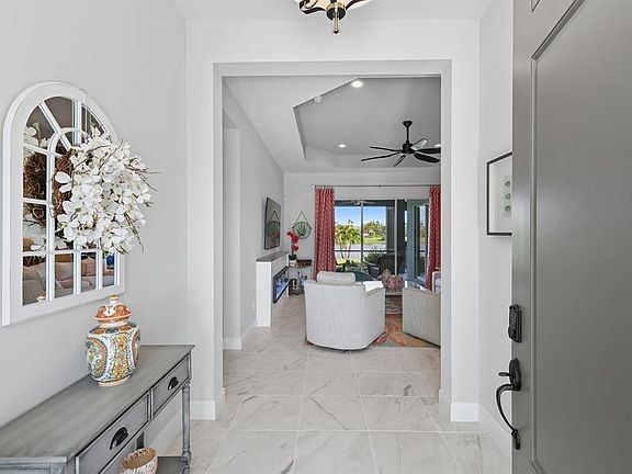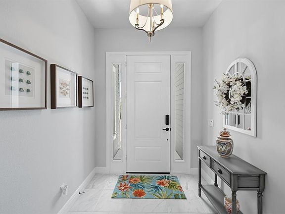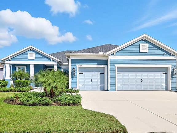 Why wait to build when you can move right into this stunning Neal Captiva model with an incredible water view just built in 2021! No CDD fees and all of the fabulous furnishings are available as well. You have to see this gorgeous home as it shows better than a model. Amazing opportunity to own this over 2,700-square-foot home with three spacious bedrooms, three full baths plus a club room and a den all on a premium lake lot. This is the only water lot in the community with a bubbler to keep it fresh and clean. Great split floor plan and a three-car garage. Upon entering, notice the beautiful view through the sliders that open for entertaining along with the newly added outdoor kitchen. Features also include a new fireplace, a chef's kitchen with a large island, gas cooktop, and stainless steel hood, upgraded flooring, lighting, tray ceilings, eight-foot doors, high ceilings, plantation shutters, custom draperies, a smart-home package, tub-in laundry, and more. All of this located in the gated community of Canoe Creek. The huge primary suite offers two walk-in closets, double vanities, and check out the gorgeous tub. Amenities include a fitness center, resort pool and spa, fire pit, a picnic shelter with grills, pickleball courts, a dog park and walking trails for your enjoyment. Conveniently located near the interstate, shopping and restaurants. What are you waiting for? Make this home yours now!