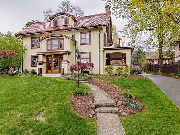 Wonderfully unique Mission-Style inspired edifice seeks its next stewards after a chain of loving ownership. Standing tall along the hillside of the former farm once owned by Rochester pioneer Gideon Cobb (Cobbs Hill), this monumental residence was built by Louis Rogers for his family. Constructed when Classical Revival styles were the rage--this gem melds influences of American revival, Spanish, Mexican & subtle Japanese elements. The grand proportions and fine materials implemented by the great craftsmen of the era are unparalleled, displaying Rochester's outstanding golden era of architecture. Experience the breathtaking marble & tile entry foyer with arched ceiling and grand staircase--this is how to greet your guests! Vintage lighting guides you to the vast LR w/large frplc & two sets of French doors to the covered porch! The formal DR has leather & beechnut wainscoting, sconce lights & chandelier, perfect for large dinner parties. The chefs eat-in kitchen has Cherry cabinets, maple counters & floors w/SS appliances & Kenmore Pro gas range! Adding to the kitchen is a marvelously intact butler's pantry w/prep sink! Ascend the staircase to the landing w/arched ceiling and built-in bench seats to admire the genteel grapevine stained-glass window attributed to the legendary Pike Stained Glass Studios of Rochester! Affixed to the staircase wall is a framed Rembrandt lithograph thought to have once hung in the Powers Building. The large 2nd flr hall is a nexus to four large bedrooms with ample closet space to include: primary ste with thoughtfully updated bathroom and stylish walk-in shower. A restored original bathroom with glazed sink, tub, tile and nickel-plated hardware! Large rear bdrm has a door to an outstanding 2nd story porch with iron railings! 3rd floor offers additional guest space, off. space, rec room & has a full bath w/kitchenette. The LL has substantial space, currently used as a theatre & rec room it also has a pwder rm & laundry rm! 2 car gar. w/storage. Meander the lush grounds w/babbling brook water feature, countless specimen trees, plants & be completely at peace on this unforgettable piece if history! Delayed Neg. Offers Due 5/13 @2p.m.