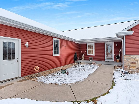 Immaculate split-bedroom ranch in a desirable neighborhood of newer homes with quick Hwy access & just minutes from Lake Butte des Morts. Open-concept design features a sun-filled kitchen, dining, and living area with vaulted ceilings and abundant natural light. Kitchen boasts hard-surface countertops, SS appliances, and a center island—perfect for entertaining. Spacious primary suite includes a private bath with a large walk-in shower & walk-in closet. Upgraded trim package with Maple interior panel doors adds warmth and character throughout. First-floor laundry and mudroom lockers. Lower level offers rough-in plumbing, daylight window, and garage access—ready for future flex space. 4-stall garage provides ample room. Landscaped yard w/patio pre-wired for hot tub completes this home.