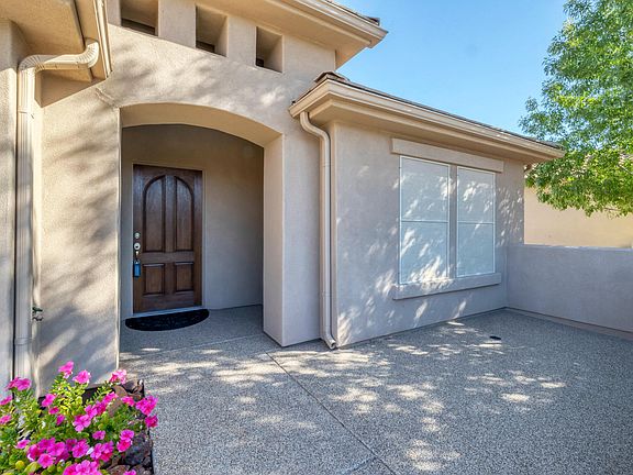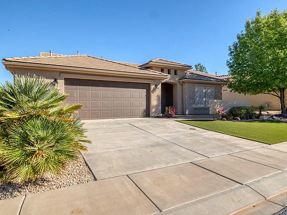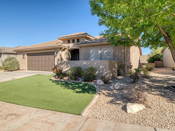 Nice home in center of community. Wonderful outdoor living with front courtyard and covered rear patio facing North. This home in Sun River has vaulted ceilings and open concept kitchen and family room. Recently updated front yard with artificial turf. The garage is oversized with enough room for a golf cart and two cars, a great option since Sun River is a golf cart community, even including the new Smiths. Mature yard with fully fenced yard for pets and privacy with nice fruit trees and area to garden. This home qualifies for HECM Financing for as little as $258,000 with no mortgage payments. Call our preferred lender to see if you qualify.
