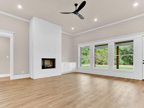 Step into this stunning modern farmhouse featuring an all-white exterior and timeless curb appeal. The heart of the home is a gorgeous kitchen with a striking green island, complemented by champagne bronze finishes — perfect for cooking, entertaining, or gathering with loved ones. Relax in the living area with a beautiful floor-to-ceiling fireplace that adds warmth and elegance to the space. Step outside to a spacious backyard featuring a covered patio, ideal for outdoor dining, entertaining, or simply enjoying your surroundings. This home seamlessly blends modern luxury with farmhouse charm, offering both style and comfort for everyday living and entertaining.