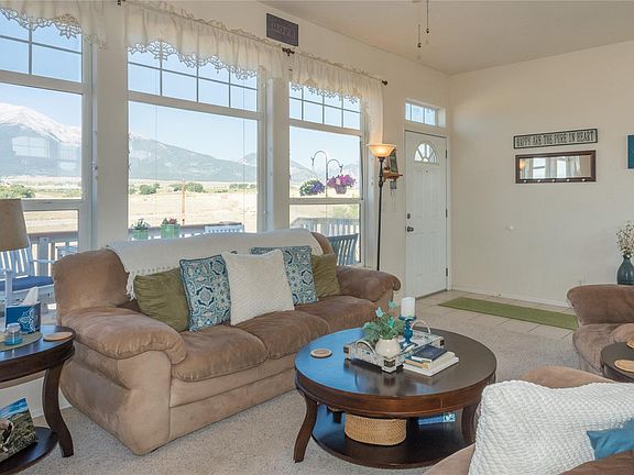 Great for a family or anyone needing wide-open spaces. Unobstructed view of Mt. Princeton beyond the green fields of Kelly Ranch (front view) and full views of Sleeping Indian, Aspen Ridge, and Buffalo Peaks stretch beyond the property's 5+ acres (rear & apartment view). Large kitchen with ample counter space/storage - island - walk-in pantry. DR with built-in glass-door hutches. Two living areas. Upstairs laundry room. New back deck. New roof. Gazebo. Roomy 2-car garage with workbench, openers, and plenty of storage - mudroom attached. Storage room/small office downstairs. Private well and septic. Wonderful HOA with only $150 annual fee. Sunny walk-out basement apartment with private entry, kitchen, LR and master suite with walk-in closet and bath. Built originally as a mother-in-law apartment but can lock-off as an income property. Income potential alone could pay 2/3+ of monthly mortgage. This one will go fast.