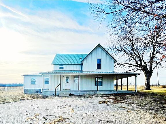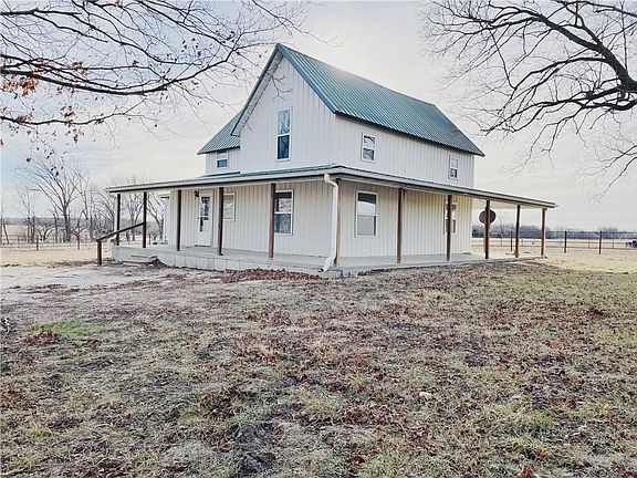 Story and a Half farmhouse on 4.3 acres m/l. This home offers wrap around porches, which are perfect to enjoy the peacefulness of the outdoors around you. 4 bedrooms, 2 full bathrooms, large living room, metal siding and roof, fenced pasture, Fresh paint, and ready for you to move right in. This is the perfect spot to call home.