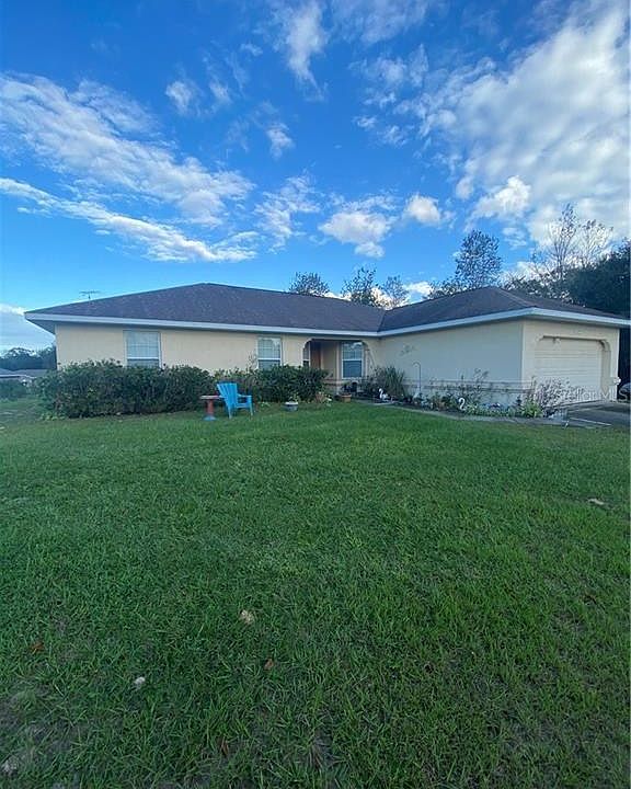 Western exposure, this Spacious 4 bedrooms, 2 baths property located in great area of Marion Oaks Unit 1. The entire property has ceramic tile floors throughout. The Split bedroom floor plan offers a great layout. Kitchen overlooks living & dining area plus has a Breakfast nook & breakfast bar. Inside laundry room (washer & dryer do not convey). 2 car garage. Property sits on a high & dry lot. Currently rented on a month to month lease. Easy to show