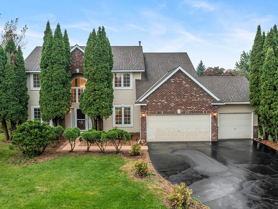 This former model home offers timeless style, exceptional space, and a prime location for those seeking both comfort and convenience. With over 3,500+ finished square feet, this home features four bedrooms plus a main-level den. The main level has an easy and thoughtful flow. All four bedrooms are upstairs, all with large closets! The spacious primary suite also features a walk-in closet plus an ensuite private bathroom with dual sinks, soaking tub, and separate shower. A second full bath with dual sinks and a tub/shower combo serves the other bedrooms, while an open hallway overlooking the foyer fills the upper level with natural light. You'll appreciate the divided floor plan! On the main level, you’ll find hardwood floors, a formal dining room, a private den with pocket doors for privacy from the living room, and an expansive kitchen with granite countertops, stainless steel appliances, a walk-in pantry, and breakfast bar seating. The kitchen opens seamlessly to the living room, where large windows and a gas fireplace create a warm, welcoming atmosphere. Step out to the maintenance-free deck overlooking the private, tree-lined backyard, ideal for relaxing or entertaining. The lower level offers outstanding flexibility with finished spaces for media, recreation, and fitness, plus an egress window and abundant storage with excellent lighting. The home sits on a 3/4 acre corner lot offering privacy and green space, it also includes a 3-car garage, freshly re-sealed driveway, and an updated sprinkler system to keep the yard looking great. This is a terrific opportunity to own a spacious, former model home in one of the most desirable school districts! Thoughtfully designed, well cared for, and ready to welcome its next chapter.