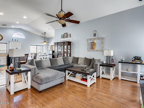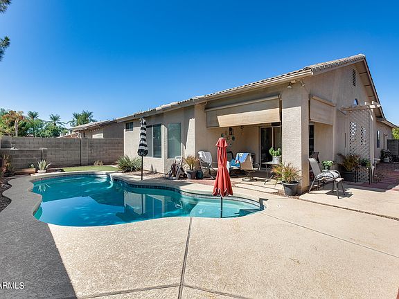 Exquisite 3-Bedroom Home with Den and Private Pool, Backing up to a Park, and Luxurious Upgrades! Original owner. This remarkable 3-bedroom residence with a separate den offers an impressive 1708 sq. ft. of living space and is nestled in a prime location in close proximity to the 303 for easy access to any location. From the private pool and electric shades on the patio to the upgraded interiors, this home offers the perfect blend of comfort, style, and convenience. Inside, the home boasts surround sound and upgraded bathrooms that showcase modern elegance. The newer HVAC system ensures your comfort year-round, while the classy closets in all bedrooms provide ample storage space. Another standout feature of this home is the absence of carpeting, offering a low-maintenance living environment. There is plenty of extra storage space with the garage cabinets and storage shed that conveys with the property. Outside you will also find newer exterior paint and an extended driveway. Grab the chance to make this gem your own!