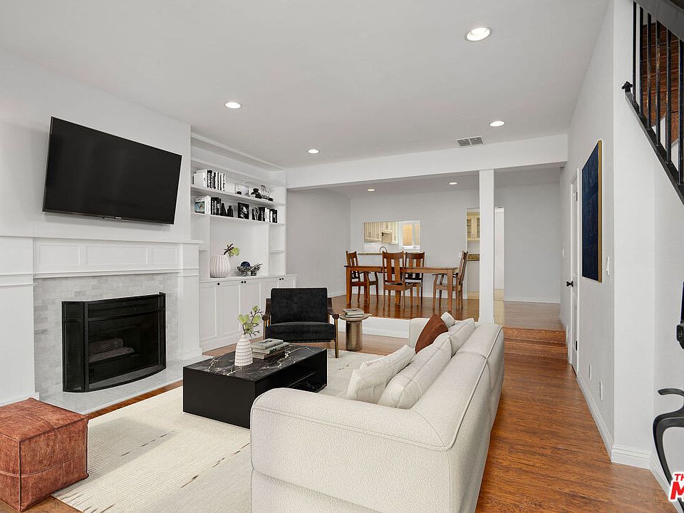 New price!! Unbeatable value in one of Sherman Oaks' most desirable neighborhoods. This beautifully updated townhouse, tucked away from Moorpark, offers quiet, comfort, style, and convenience. Step inside an open and inviting living room flooded with natural light. This spacious room features a gorgeous fireplace and custom built-ins, flowing seamlessly to a private patio, perfect for relaxing or entertaining. The custom kitchen boasts granite countertops, stainless steel appliances, and a cozy breakfast area, complemented by a formal dining room for larger gatherings. Upstairs, you'll find two impressive bedrooms with vaulted ceilings, each with its own private bath. Additional highlights include hardwood floors, recessed lighting, custom window coverings, powder room, freshly painted walls, and in-unit washer/dryer. This boutique complex of just six units also provides two dedicated side-by-side parking spaces in a gated garage. Enjoy the best of Sherman Oaks living, moments from restaurants, shopping, parks, and all the neighborhood has to offer!