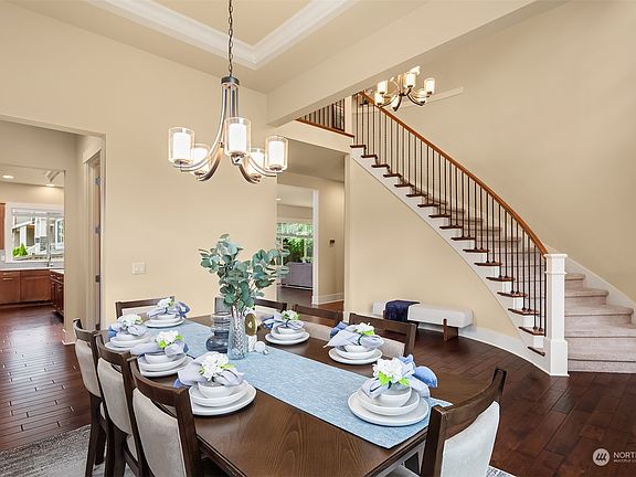 American Classic Homes resale in sought after Heritage Estates. Former model home featuring phenomenal floorplan situated on a corner lot. Step inside to discover high ceilings throughout and a grand sweeping round staircase at the entry. The gourmet kitchen is a chef's delight, equipped with top-of-the-line KitchenAid appliances, a butler’s pantry, and slab granite countertops. Retreat to the luxurious primary suite, w/ vaulted ceilings, complemented by a spacious 5-piece bath and a generous walk-in closet. Main floor bedroom/office. Four more beds upstairs with one able to flex to bonus rm. Entertain in style on the large covered patio, surrounded by custom landscaping and a tranquil fountain. Awesome Storage. Issaquah Schools!