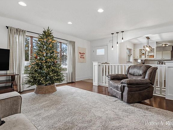 Walk through the new front door into the main floor, which provides a living room with lots of natural light or can lighting for the evening hours, the dining room, kitchen that includes a pantry closet, two bedrooms and a full bathroom. New carpet and flooring have been installed in the living room, all bedrooms, and stairs. The stairwell was painted to provide a fresh crisp look, as well as walls, trim, and doors throughout. Whole home has dimmer light switches to give each space the ambience you are searching for! With a primary bedroom this large, you can finally say yes to that king-sized bed, oversized dresser and the cozy sitting area you had on your Pinterest board. Bedroom also has a walk-in closet with custom shelving and a pocket door access, as well as provides access directly to the full bathroom and new French doors out to the back deck which extends the whole length of the house!