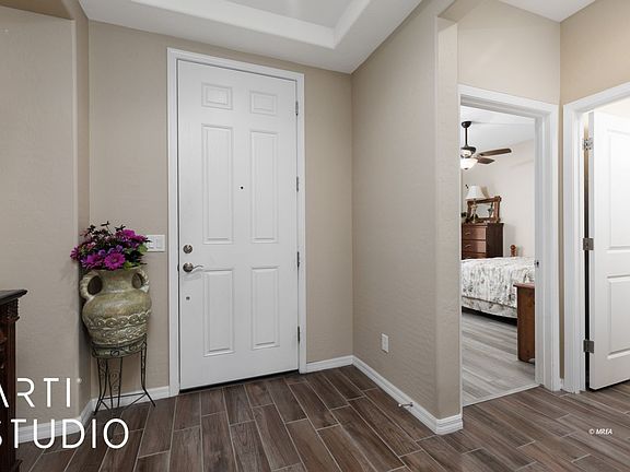 Sun City Haven Plan | SID Paid | Upgraded. Located in Sun City Mesquite's premier 55+ community, residents here enjoy access to great amenities, including golf, indoor and outdoor pools, a fitness center, tennis courts, and a full-service clubhouse. This Haven floor plan offers 2 bedrooms, 2 bathrooms, a den and a side courtyard. The SID balance is PAID IN FULL! The kitchen is designed for entertaining, featuring a counter-height granite island, stainless steel appliances, granite countertops and a large pantry. (All appliances are included at no additional cost - kitchen and laundry area) Wood-look tile flooring runs through the main living areas, with luxury vinyl plank in the bedrooms, walk-in closet, and den. The primary suite includes a walk-in shower and a great sized walk in closet. The garage provides a 2-foot extension, added storage space, a water softener and a split cooling system. The exterior offers costly paver stone upgrades on the driveway, side courtyard and extended back patio. Custom pergolas enhance both outdoor spaces. The large, fully fenced backyard provides extra privacy and plenty of room for outdoor enjoyment. This home will not last long-call today for more information and come see for yourself!