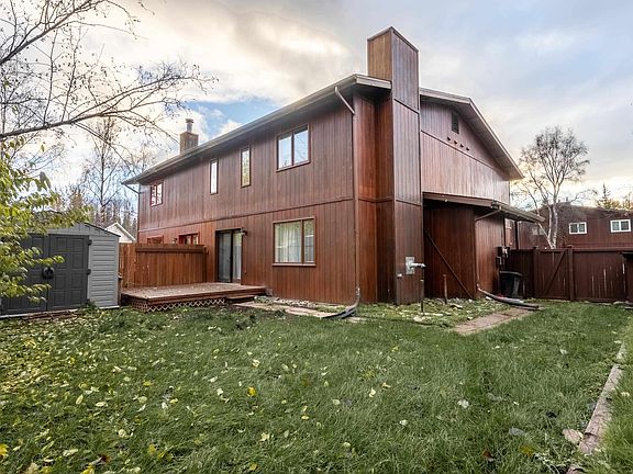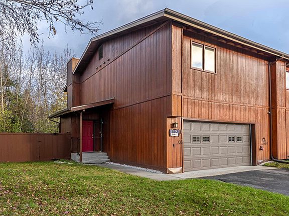 Welcome home to this charming 2-bedroom, 2-bath property featuring a spacious 2-car garage and zero-lot-line design for effortless living. With its warm wood exterior, open layout, and modern updates, this home blends comfort and practicality in one beautiful package. Step inside to find an open living space. The kitchen with it's stainless steel appliances, double oven, Corian countertop, tile backsplash, and cabernet birch cabinets opens to the main living area with a pellet stove for making it cozy and warm in the cold winter months. Upstairs, both bedrooms are generously sized with great closet space, while the bathrooms are well-appointed and functional. The primary bath has a huge walk in shower, jetted tub, and so many drawers for space & organization. The 2nd bath has a connecting door to the 2nd bedroom and a sauna! Outside through your french door, enjoy your private fenced area and deck, ideal for BBQs, morning coffee, or relaxing evenings. The attached 2-car garage provides convenience and extra storage, while the low-maintenance yard means more time to enjoy your home and less time on upkeep. Located in a desirable area in West Fairbanks, close to schools, shopping, and parks, this home is perfect for anyone seeking a comfortable, affordable, and well-kept residence. This home is move in ready!
