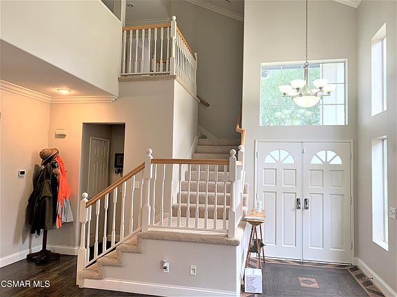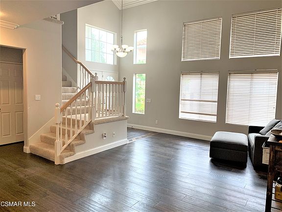 Incredible 5 bedroom home in the highly desired, guard gated Rancho Conejo Community. Spacious living room with hardwood floors, vaulted ceiling, recessed lighting and custom window treatments. Large dining area with crown molding and recessed lighting. Remodeled kitchen with granite counters, custom backsplash, maple cabinets, stainless steel appliances, built in refrigerator and tons of cabinets. Double doors lead to the Movie room with blackout curtains, vaulted ceiling, and recessed lighting. All bathrooms have been tastefully remodeled. This property has a downstairs bedroom and bath with a stall shower. Hardwood flooring throughout most of the downstairs. Upstairs you will find 4 nice-sized bedrooms and 2 baths. Spacious backyard with built in basketball hoop, patio and grassy area. Close to Blue Ribbon Schools, Shopping and Restaurants.