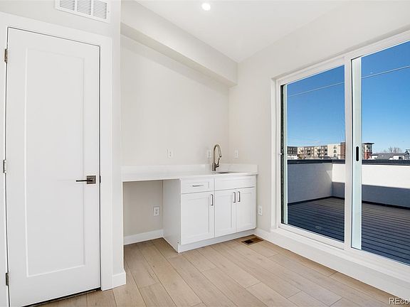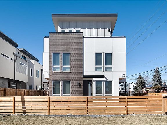 Located in the heart of West Colfax and just minutes from Sloan's Lake, this 1,050 sq ft townhome offers modern design and convenience. Featuring 2 bedrooms and 2 bathrooms, the home showcases soaring ceilings, oversized windows, and sleek finishes throughout. The open-concept kitchen includes quartz countertops and stainless steel appliances, flowing seamlessly into the living space. A private walk-out rooftop provides the perfect spot for entertaining or relaxing with city and mountain views. Additional highlights include a one-car detached garage and newer construction filled with natural light. Walking distance to Sloan's Lake, Edgewater, and many of Denver's most desirable shops, restaurants, and coffee spots.