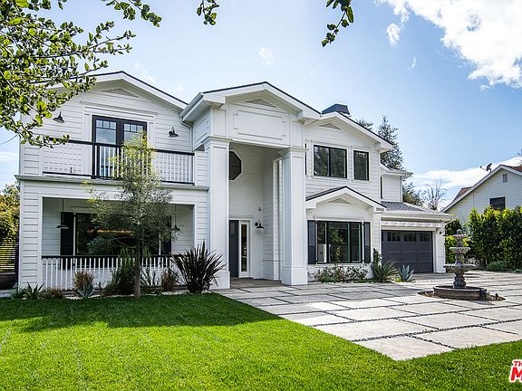 Situated on a quiet, tree-lined street in prime Sherman Oaks sits this recently built Cape Cod stunner. Down a private driveway, a story unfolds as a grand entry with wide plank wood floors & voluminous ceilings open to a modern floor plan drenched in natural light. Exquisite details grace the formal dining & living room, flowing perfectly to another dining area flanked by a family room w/fireplace & chef's kitchen w/massive center island, stone counter tops, high-end stainless appliances & custom cabinets - all opening to a swimming pool w/spa & tanning shelf. A powder room + an en-suite bedroom round out the lower level. Upstairs, 4 bedroom en-suites, including a primary master suite w/walk-in shower & free-standing spa-bath + dual vanities all drenched in stone tiles, are the perfect place to unwind. Direct entry 2-car garage, central hvac, recessed lighting + many other custom touches make this an unforgettable offering! Close to shopping & dining along famed Ventura Blvd.