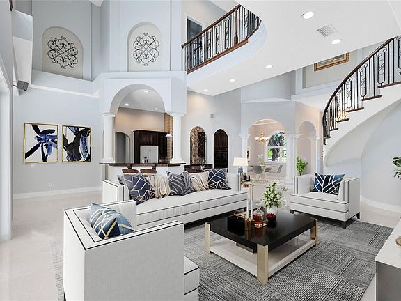 One or more photo(s) has been virtually staged. Welcome to 13950 Smokerise Court, a CUSTOM-BUILT MULTIGENERATIONAL estate in the highly sought-after Live Oak Estates community—nestled within the greater Lake Nona area and Lake Mary Jane pocket of southeast Orlando. Crafted by its ORIGINAL OWNER, a custom home builder, this residence showcases superior craftsmanship, luxury finishes, timeless design, and ultimate functionality across more than 6,000 living sq ft on 1.3 ACRES! With 7 bedrooms and 6.5 baths, this home lives like two houses in one, offering ideal flexibility for extended family or guests. Soaring ceilings and open living areas invite natural light and effortless flow throughout. The main residence features a FIRST-FLOOR PRIMARY SUITE with dual walk-in closets and a custom ensuite bathroom that has a superior custom and private walk-in shower. If you go up the stairs as you enter the home, you’ll find three bedrooms upstairs with one full bath and one half bath for the ultimate privacy and convenience. The loft upstairs can be turned into a bar or game room or anything your interior designer heart desires. If you go up the smaller set of stairs on the right side of the home, you’ll enjoy the intimate theater room perfect for cozy nights in. As you walk through the enclosed walkway and laundry room at the rear of the main house, you walk into the private living area at the back of the property that is a massive 1700 sqft IN-LAW SUITE complete with a FULL KITCHEN, living room, 2 BEDROOMS, and 2 bathrooms. Complete privacy and togetherness perfect for multigenerational living! Step outside to a large screened-in pool in between the two living spaces along with a beautifully paved courtyard with fire pit, creating a private retreat for entertaining or quiet relaxation. Enjoy the tranquility of Live Oak Estates with all the amenities of Lake Nona living just a short drive away. Located just minutes from Lake Nona Medical City, Moss Park, and top-rated schools, this estate offers the best of custom craftsmanship and luxury living.