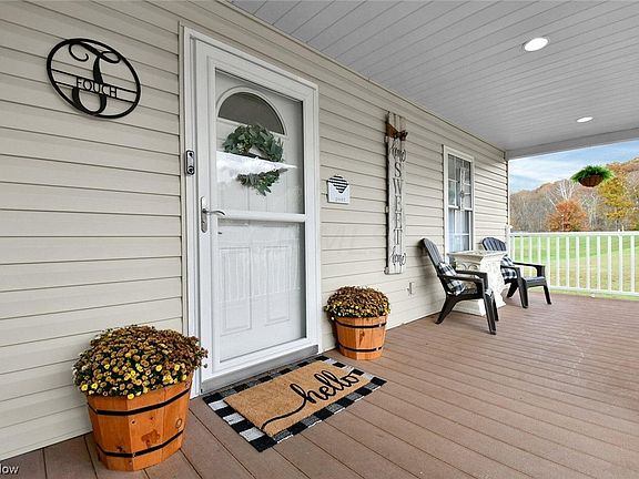 This home is even more beautiful in person - beginning with not one, but TWO covered porches. Enjoy the sweeping views of the gorgeous Hocking Hills backdrop, breathtaking at sunrise, sunset, and everything in between. The open layout is airy and perfect for entertaining. The quartz kitchen has solid-wood cabinets, large island, and SS appliances. The dining space overlooks the covered back porch and yard. Perfect for hosting holiday meals or gathering for game night. First floor primary suite with back porch access, 3 large upstairs bedrooms with a full bath and half bath, plus a landing, loft or play area. FULL finished basement, flat yard with firepit, storage, 2-car attached garage, concrete drive, plus brand NEW roof and furnace/HVAC. Move right in and enjoy country living!