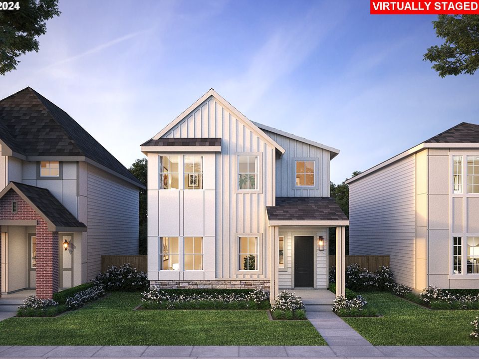 Beautiful East facing home with Farmhouse front. Please call for details! This home offers large bonus for flexible living space on first floor. 1st picture is rendering of Farmhouse front of home, 2nd is interior upgrade finishes. You'll love the Urban Upgraded interior selected for this home which you can also view in our Model Home. Enter at the roomy front porch nestled in the Axiom Community. Enjoy our Standard 10-foot ceilings and 7" baseboard trim class are so rich looking, large bonus on main floor perfect for half office/half sectional or game/rec room, movie theater or hobby of your liking. Abundant windows flood the space with natural light. Gorgeous kitchen with built in oven & microwave. Gas cooktop with hood that offers storage underneath. Large island for gathering and space to cook up your favorite recipes. Come explore our new community and town center. Enjoy a suburban setting with the urban energy that includes over 25,000 sq. ft. of retail and recreation spaces including a town center offering future retail, walking paths, fenced dog park, pickleball court, play structure. Come see today.