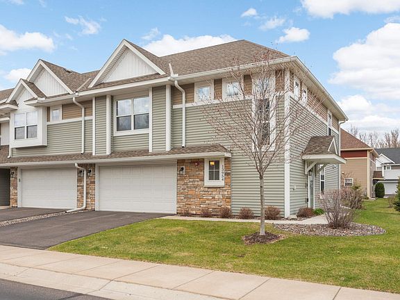 Immaculate end-unit townhome nestled next to Elm Creek Park Reserve-enjopy year-round outdoor fun just steps from your door! Hike, bike, ski, sled, or unwind at the swimming pond, playgrounds, picnic spots, and Eastman Nature Center. Inside, you'll love the easy, low-maintenance lifestyle paired with stylish upgrades: walk-out patio to green space, professionally landscaped yard, spacious kitchen with soft-close cabinets, pull-out drawers, large center island, and ceiling fans. Relax by the cozy gas fireplace in the sun-filled, open-concept living area. upstairs offers three generous bedrooms plus a versatile loft, including a private owner's suite with a 3/4 bath. Prime location close to shopping, dining, schools, and more! Quick close possible. Available only due to relocation! Don't miss this stunning home in a great location!