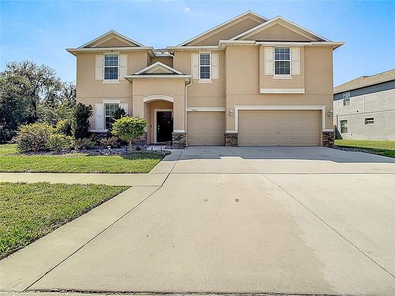 GORGOUS AND LOTS OF ROOM FOR EVERYONE! A newly built property in 2016, a spacious 7 bedrooms, 4-bathrooms, 2-story home is in a pristine community. Nice size yard, corner lot, backs up to a conservation area with a pond. A large spacious kitchen with lots of counterspace, granite countertops, stainless steel appliances, a massive kitchen island, and is open to the large size family room for a great flow throughout the home. A formal dining room and living room is idea for special occasions. A breakfast room right off the kitchen, and as a separate office space for privacy. One bedroom is downstairs with a bathroom right outside of the bedroom, great for quests. Upstairs there is a flex space that can be used as a playroom, sitting area, library, media area, etc. The upstairs Master bedroom suite is huge with multiple closet spaces. The large master bathroom suite has dual sinks with granite countertops, toilet closet, separate walk-in shower, and a garden tub for relaxing. The remaining bedrooms are upstairs, and all bedrooms are a great size. Extra-large 3 car garage, and one of the largest floorplans in the community! Property is in a serene area of the community, with a wonderful view of nature and a pond, and a well pump irrigation system. The community offers: community resort style pool, lakes & ponds with docks, tennis courts, basketball, playground, clubhouse, fitness center, dog park, & walking trails. Easy commute to anywhere in Tampa Bay!