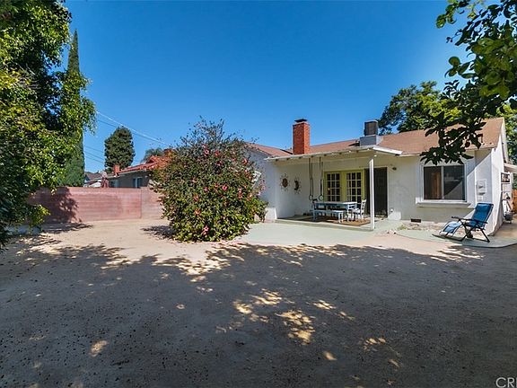 Wonderful ranch style bungalow sitting on a tree lined street with great curb appeal. Open floor plan with a great living room/dining room combination. Original wood floors, crown moldings, stone fireplace and French doors that lead to a covered patio and beautiful drought resistant backyard with mature trees. Galley kitchen with tile counter tops and floors with stone pavers. There is plenty of room for a breakfast table and small office leading to the attached garage. Laundry is in the garage. Down the hall are two additional bedrooms and a full bath. One bedroom with an attached bath is at the front of the house. All bedrooms are good size with ample closets.