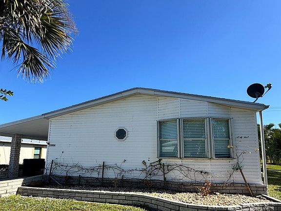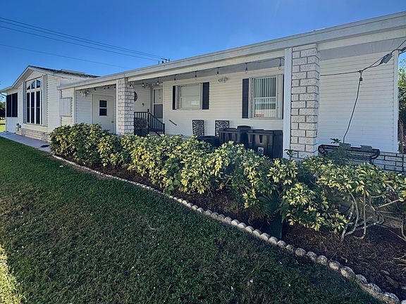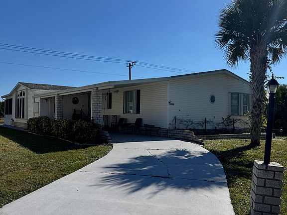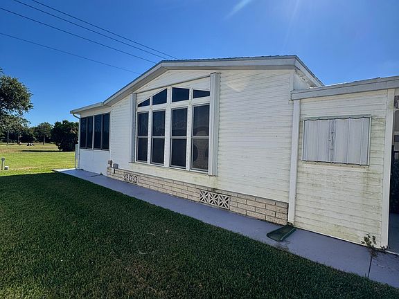 Well maintained 3 bedroom 2 bathroom home in the desirable 55+ Spanish Lakes Fairways community. This home sits on a very quiet cal da sac and backs up to the golf course. The home has a lovely Lanai is great for enjoying morning coffee or evening cocktails. Added patio area off the lanai for grilling or just enjoying the Florida sun. This home boast 3 bedrooms, living room and family room. laundry room is inside. Plenty of space for out of town guest. Laminate and carpet flooring. Spanish Lakes has 2 pools, a private 18 hole golf course, sauna, fitness room, library, billiards, craft room, bocce, pickleball, shuffle board, darts and more. Lawn cutting, trash removal are also included in lot rent.