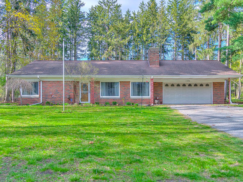 Sharp Brick Mid Century Modern Ranch Home situated on nearly an acre lot in desirable Summit Township offering 4BR/2BA, hardwood floors throughout most of home. Enter into foyer that opens to large dining & living room w/wood burning fireplace, expansive vintage kitchen with great cabinet space overlooking backyard. Main floor laundry. Primary Bedroom offers 2 closets, 4th bedroom demo was started to remodel it, bring your ideas! Attached 2.5 Garage. Stamped concrete patio in backyard leads to above ground pool (needs a new liner). Home has Central Air.(approx. 7 years old.) Furnace approx. 5 years old. Home is in need of work and is reflected in price. Home is being sold ''as is'', seller unable to make any repairs. Home could be beautifully restored!