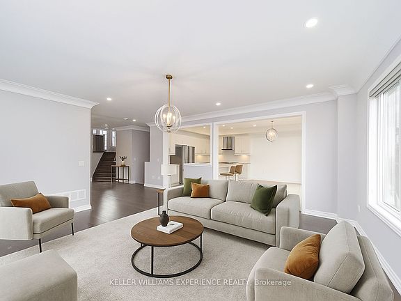 Bright & Spacious Detached Home in Desirable Alcona, Innisfil! Welcome to this stunning, modern home nestled in a sought-after new development. Featuring numerous upgrades throughout, including elegant coffered ceilings, pot lights, a frameless glass shower, and a free-standing tub in the luxurious bath. The main floor boasts 9' ceilings and an open-concept kitchen that flows seamlessly into the large family room, perfect for entertaining. Enjoy the airy living room with a walkout to a balcony featuring a 13-ft ceiling-a truly unique design element! The large walk-in closet provides ample storage and convenience. Ideally located close to shopping, schools, parks, and just minutes from Lake Simcoe, this home perfectly blends comfort, style, and location. Double garage with access directly to the main floor and basement where you will find upgraded large windows. Parking for 6 cars with 4 on the driveway with no sidewalk.