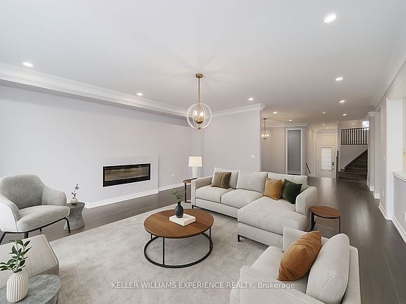 Elegant coffered ceilingsPot lightsFrameless glass showerFree-standing tubOpen-concept kitchenLarge family roomWalkout to a balcony