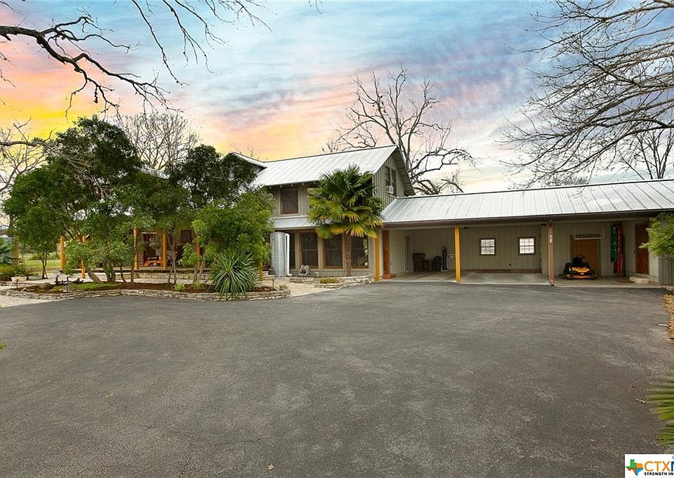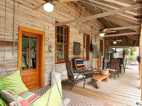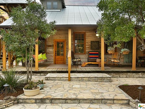 Beautiful Historic Home on 4.2 ac. on Guadalupe River. 300 ft. of riverfront. Rustic charm tastefully restored. Kitchen has new stainless appliances & gas. Master is up w/what could be 3rd bedroom being used as a study w/balcony. Bed and bath down could also be used as master suite. Beautiful long leaf pine floors Huge dining for entertaining. 2 open living areas. Patio w/firepit. Outdoor lighting. Rain capture system for landscape and fenced garden. Riverfront is wonderful w/easy access. Gated entry. A true gem on the river.